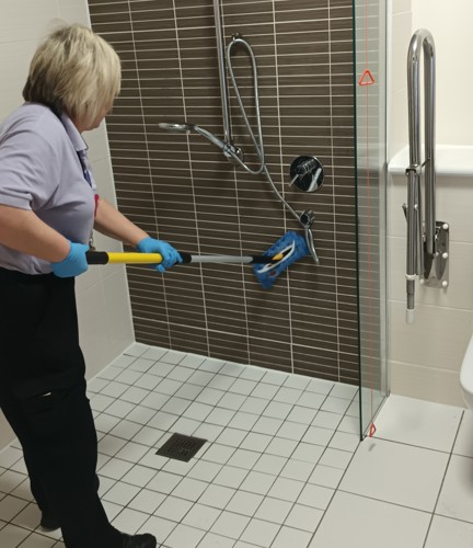 “Secondly, safety improvements from using products like the High Level Duster that reaches telescopically while a cleaner can keep their feet on the ground, or a microfibre cover on a flexible head means the tool can twist and turn, rather than our staff having to, reduces physical strain or potential musculoskeletal problems. As well as the reduced fatigue that comes from using a lighter cart and removing heavy buckets water.