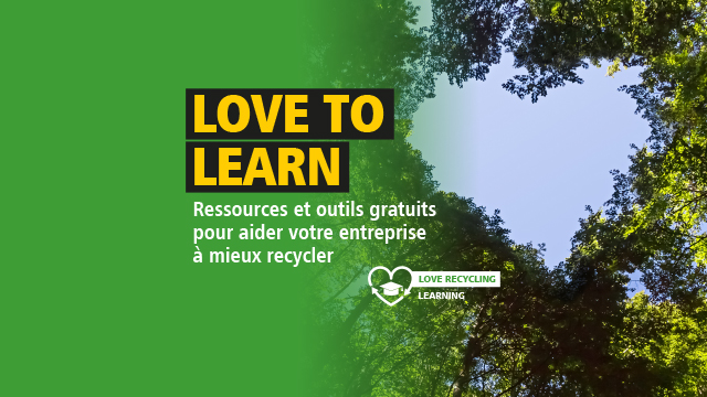 Dans le cadre de notre initiative « Love Sustainability Journey », nous nous engageons à informer et sensibiliser nos clients, nos partenaires dans la distribution et nos employés en leur proposant un contenu et des programmes engageants et instructifs sur le thème du développement durable. C'est pourquoi nous avons créé des ressources et des outils gratuits pour vous aider à atteindre vos objectifs de recyclage.