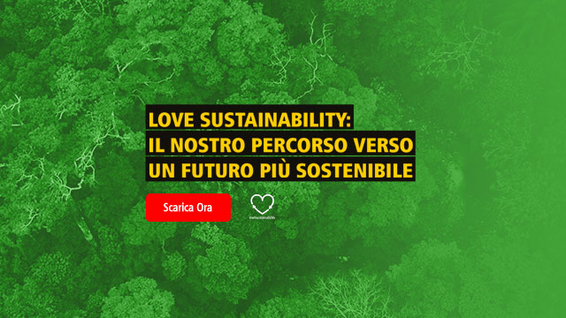 Love Sustainability sancisce il nostro impegno ad adottare prassi quanto più possibile sostenibili, aiutando anche la tua azienda a fare altrettanto. Il nostro scopo? Compiere passi avanti in termini di sostenibilità, tenendo conto di un intreccio di interessi economici e molteplici sfide. Unisciti a noi nel nostro Percorso e segui i nostri progressi rispetto agli obiettivi: